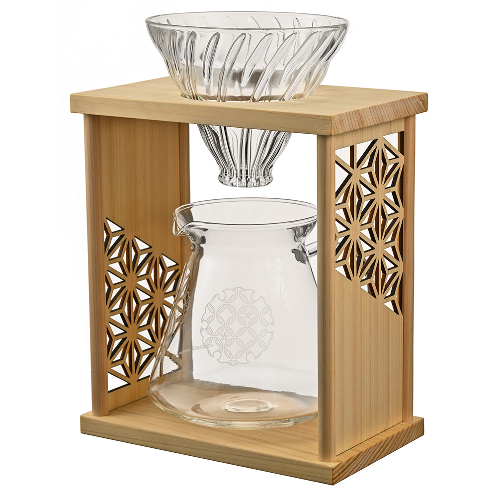 At the heart of the collection lies a fusion of glass and the traditional Japanese “Shippou” pattern — a timeless motif symbolizing harmony, connection, and prosperity. The circular geometry of Shippou interacts delicately with the luminous transparency of glass, creating an interplay of light and texture that transforms coffee brewing into a serene, almost ceremonial experience.